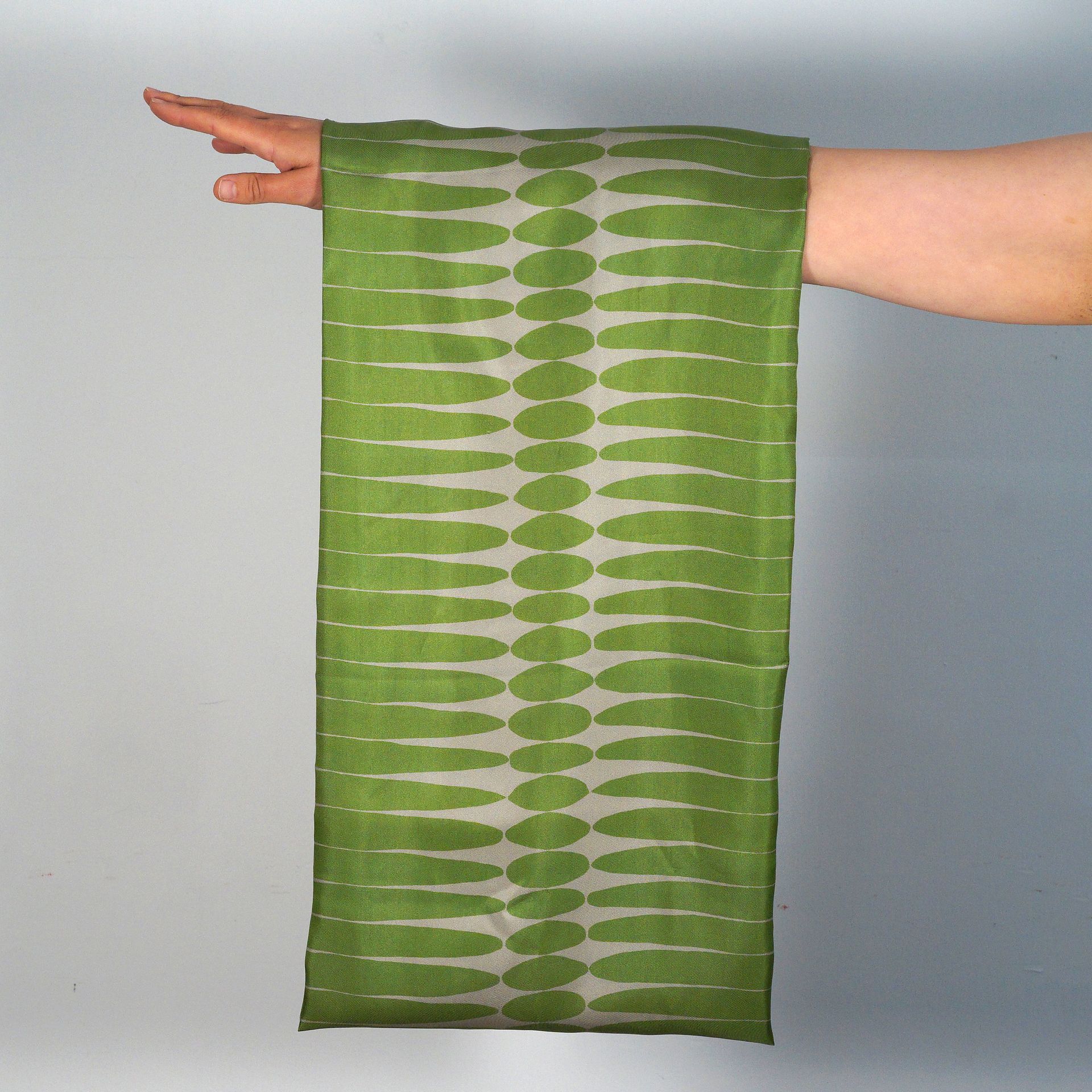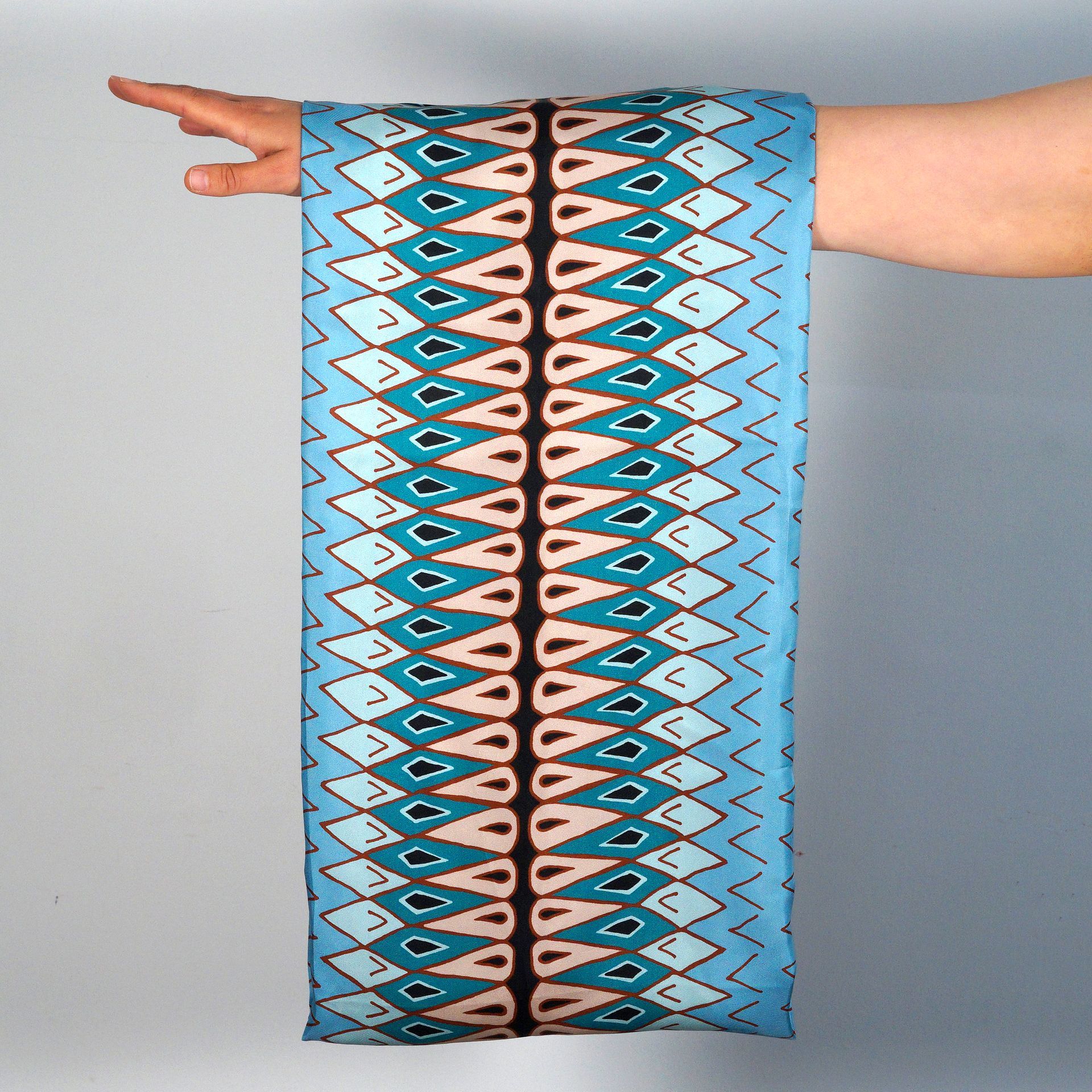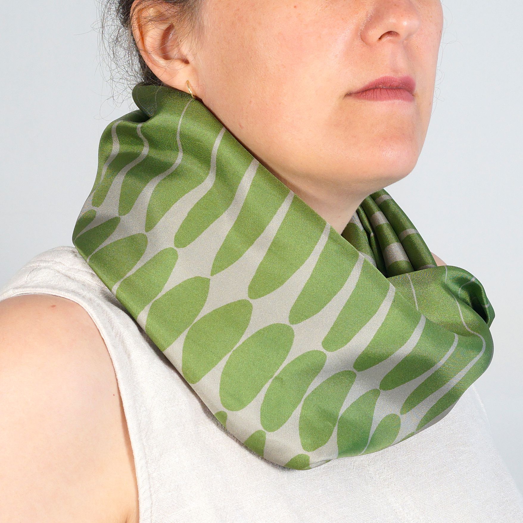 With the silk scarves, I create contemporary designs with divine colour combinations. While scarves are a practical item, I approach them like jewellery, aiming to create something that makes the wearer feel both beautiful and confident. I focus on flattering colours and look at how the patten interacts with the folds and drapes of the fabric.